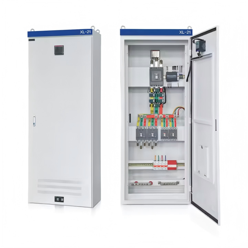 کابینت توزیع برق ولتاژ پایین XL-21 عمدتاً برای توزیع برق در شرکت های صنعتی و معدنی با استفاده از سیستم های سه فاز، سه سیم و سه فاز، چهار سیم با فرکانس AC تا 50 هرتز و ولتاژ تا 500 ولت و همچنین برای روشنایی برق استفاده می شود. این یک محفظه محصور است که از صفحات فولادی خم شده ساخته شده است. دسته عملکرد سوئیچ چاقو در ستون جلوی سمت راست بالا قرار دارد و سوئیچ برق را فراهم می کند. یک ولت متر برای نشان دادن ولتاژ شین بر روی تابلوی توزیع نصب شده است. درب جلو تمامی اجزای داخلی را برای بازرسی و نگهداری آسان در معرض دید قرار می دهد. این کابینت توزیع از اجزای پیشرفته استفاده می کند که منجر به طراحی فشرده، نگهداری آسان و پیکربندی سیم کشی انعطاف پذیر می شود. علاوه بر قطع کننده های مدار هوا و فیوزهای حفاظت در برابر اتصال کوتاه، کابینت دارای کنتاکتورها و رله های حرارتی نیز می باشد. درب جلو دکمه ها و چراغ های نشانگر را در خود جای می دهد.